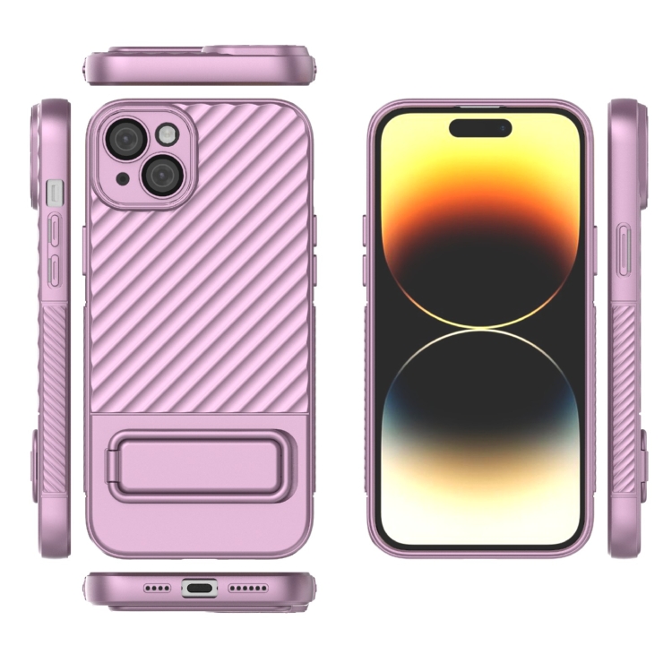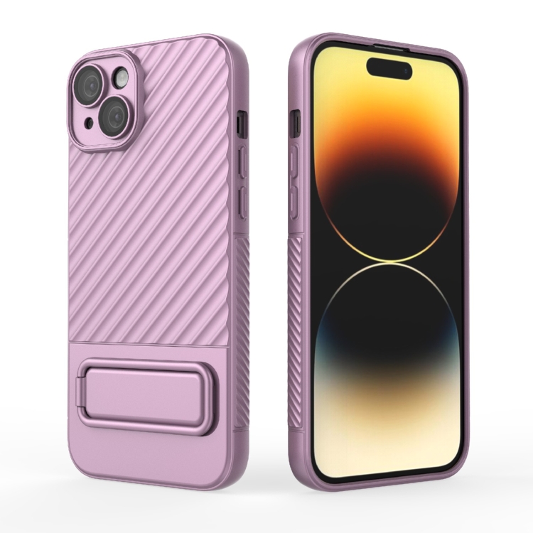 Funda para Teléfono TPU iPhone 15 Plus Textura Ondulada Película para Lentes (Púrpura)