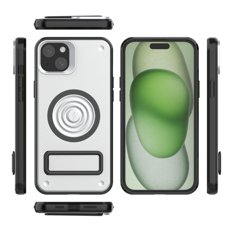 Funda para Teléfono iPhone 15 Plus PC + TPU con Textura de Fibra de Carbono y Soporte de Metal (Blanco)
