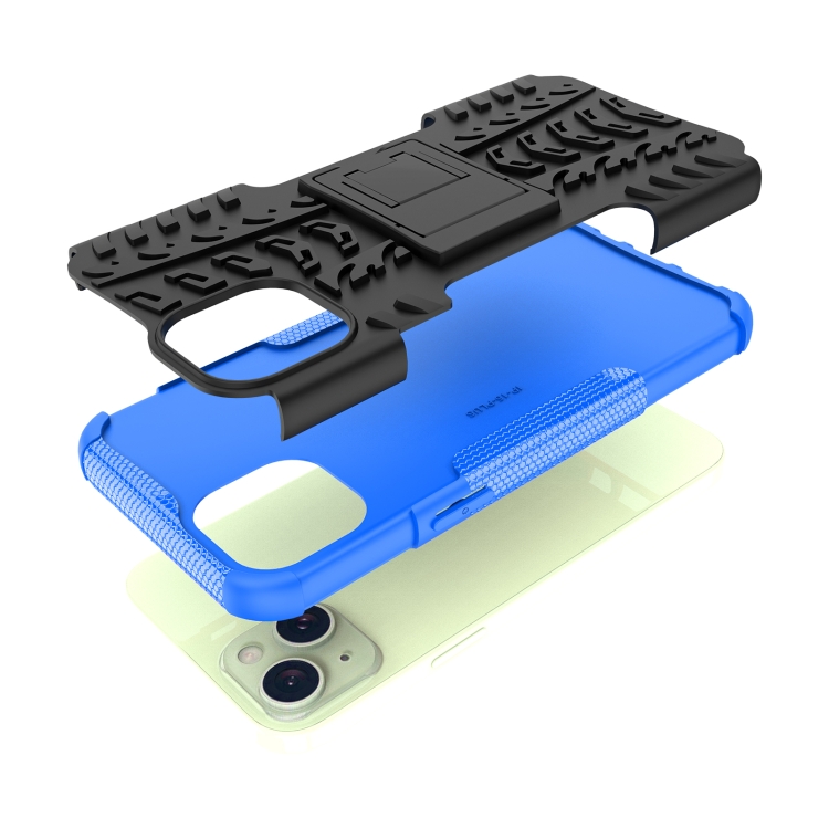 Funda para Teléfono iPhone 15 Plus TPU + PC Textura de Neumático con Soporte (Azul)