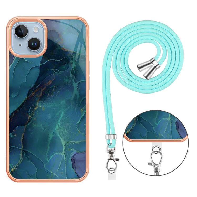 Funda para Teléfono iPhone 15 Plus Galvanoplastia Imd TPU con Cordón (Verde)