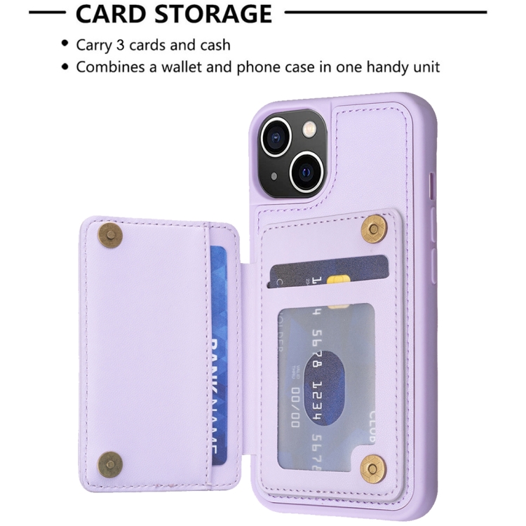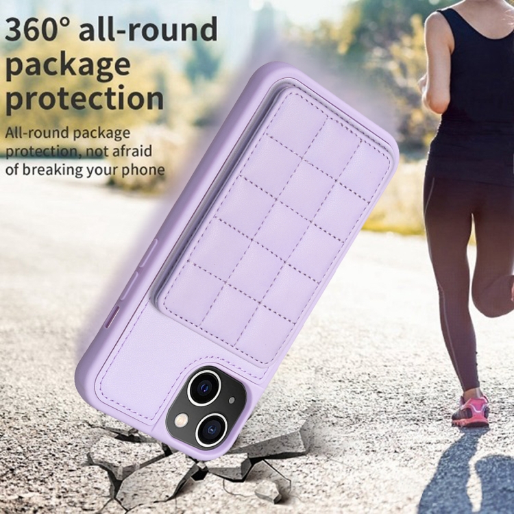 Funda para Teléfono iPhone 15 Plus Grid Card Slot Holder (Púrpura Claro)