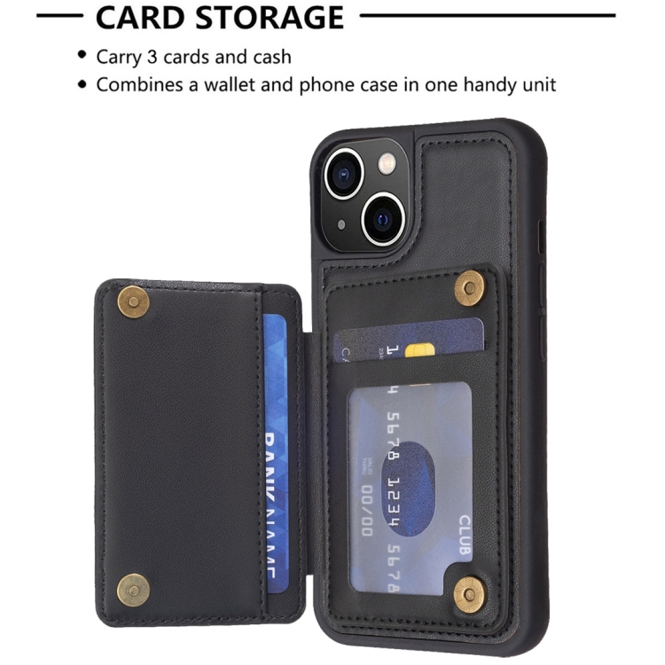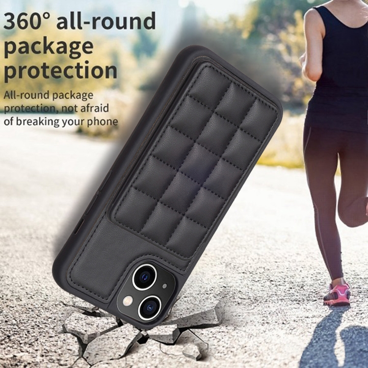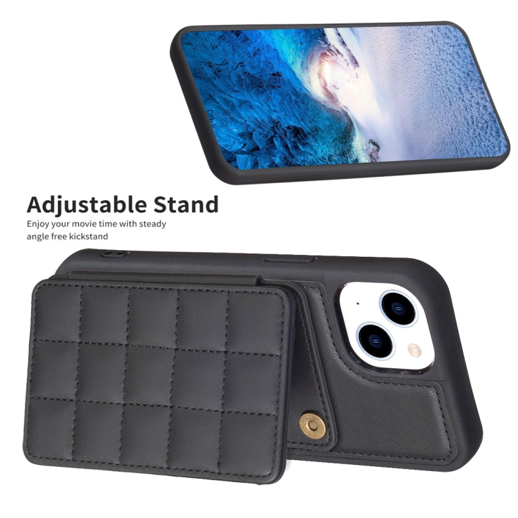 Funda para iPhone 15 Plus Grid Card Slot Holder Phone Case (Negro)
