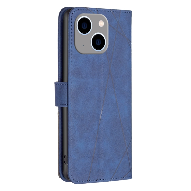 Funda para iPhone 15 Plus Hebilla Magnética Rombo Textura de Cuero (Azul)