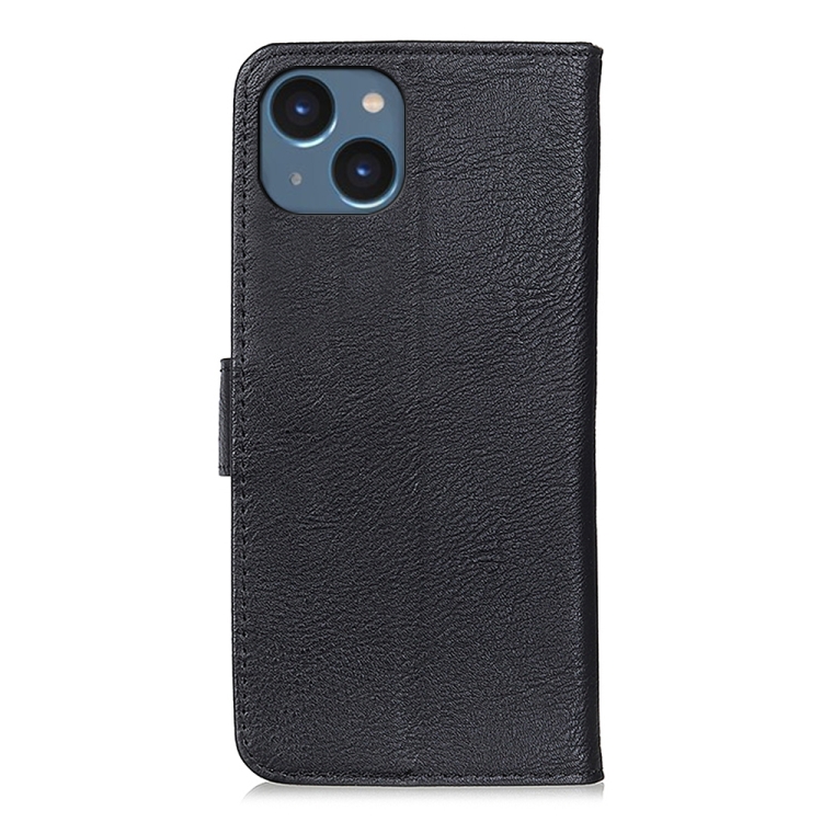 Funda para iPhone 15 Plus Khazneh Cuero Textura Piel de Vaca Tapa Horizontal (Negro)