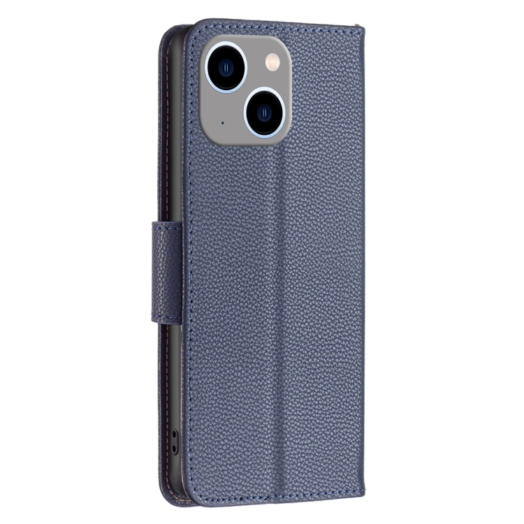 Funda para iPhone 15 Plus Litchi Texture Flip de Cuero (Azul)