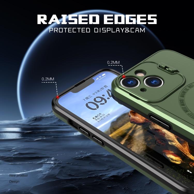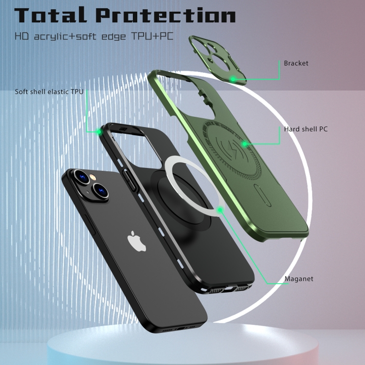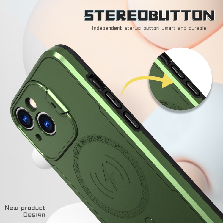 Funda para Teléfono iPhone 15 Plus Magsafe con Soporte Magnético Invisible para Cámara (Verde)