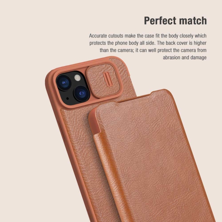 Funda para iPhone 15 Plus Nillkin Qin Series Pro Cuero Cubierta Cámara Deslizante (Rojo)