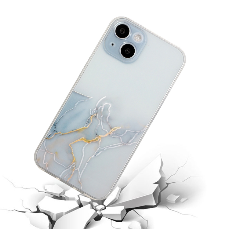 Funda para iPhone 15 Plus TPU Patrón de Mármol Hueco Borde Recto (Gris)
