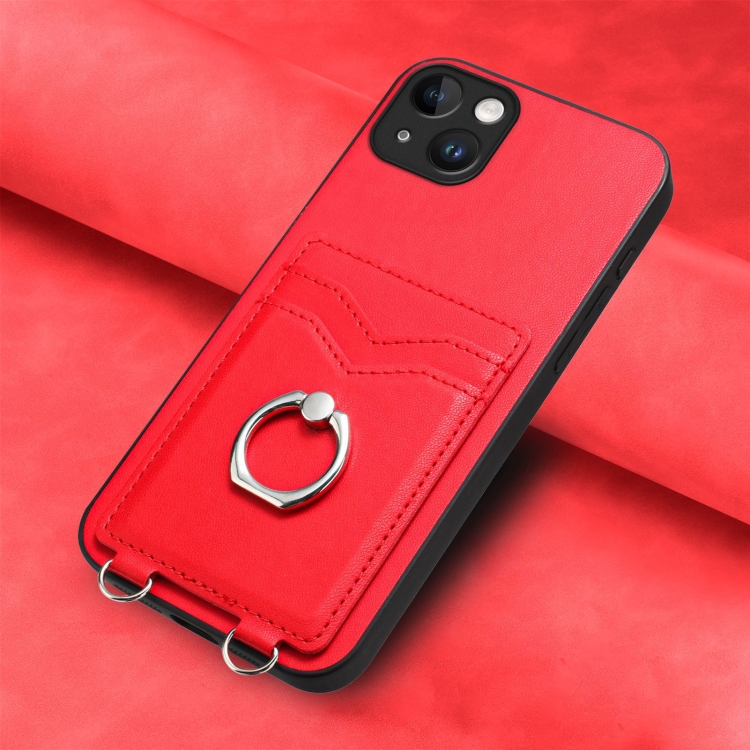 Estuche para Teléfono iPhone 15 Plus R20 con Soporte para Tarjeta y Anillo (Rojo)
