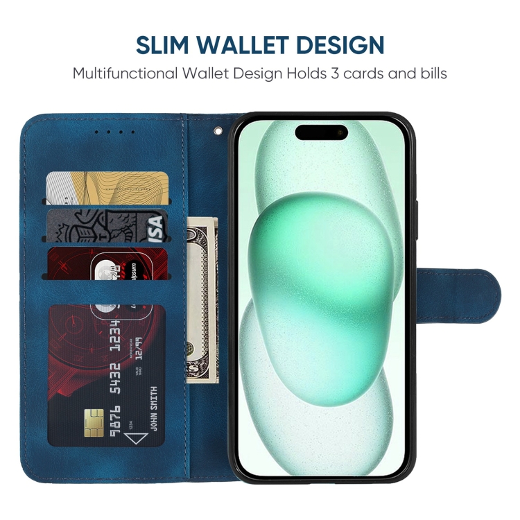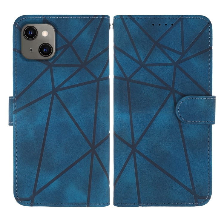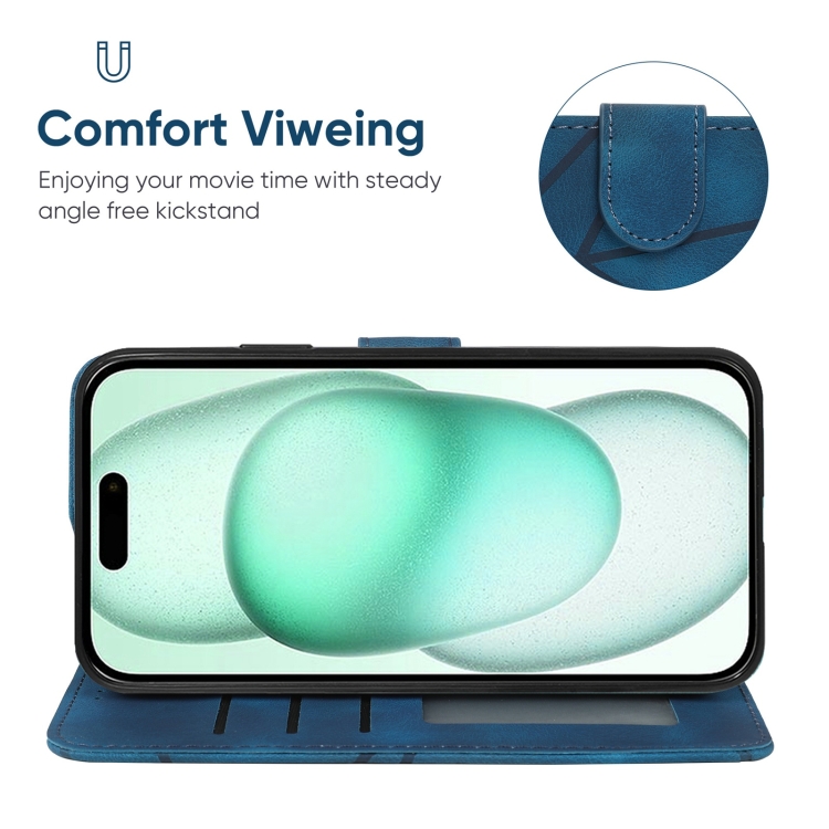 Funda para iPhone 15 Plus Skin Feel Cuero Líneas Geométricas (Azul)