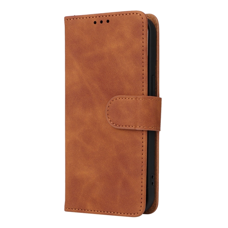 Funda para iPhone 15 Plus Skin Feel Magnetic Flip Leather Phone Case (Marrón)