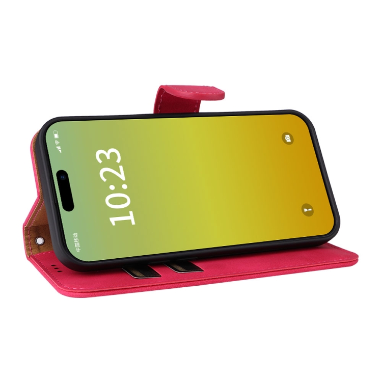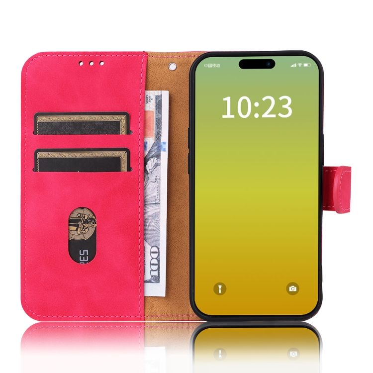 Funda para iPhone 15 Plus Skin Feel Magnetic Flip Leather Phone Case (Rose Red)