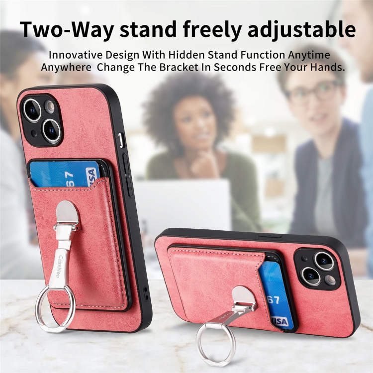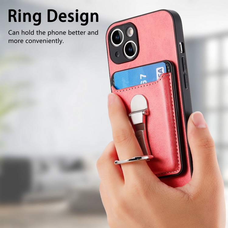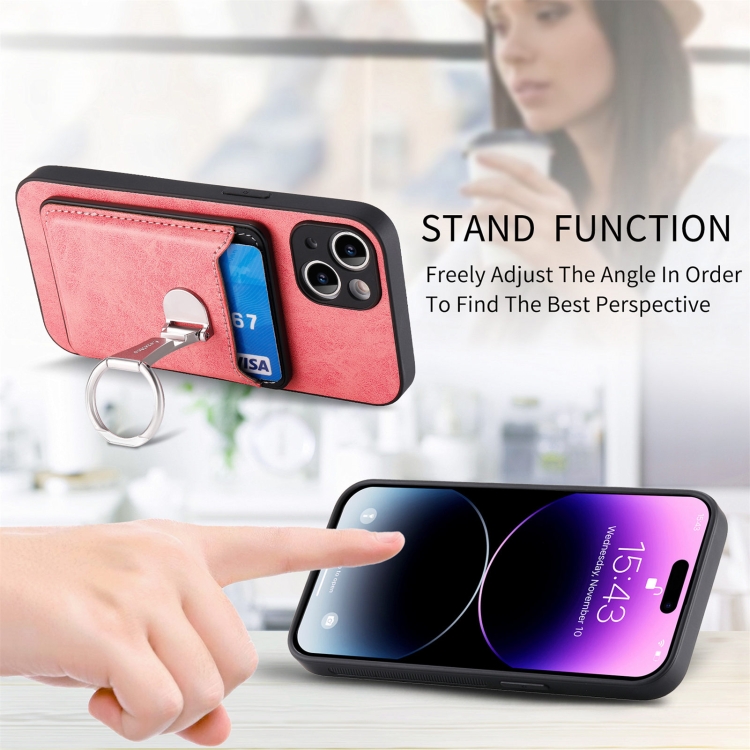 Funda para iPhone 15 Plus Skin Feel Ring Holder Wallet Magnética (Rosa)