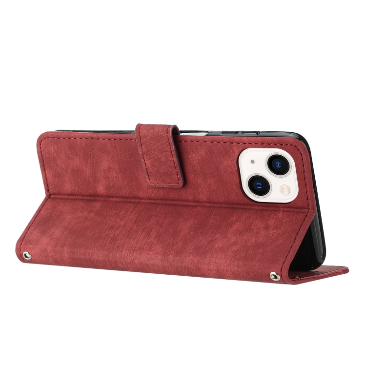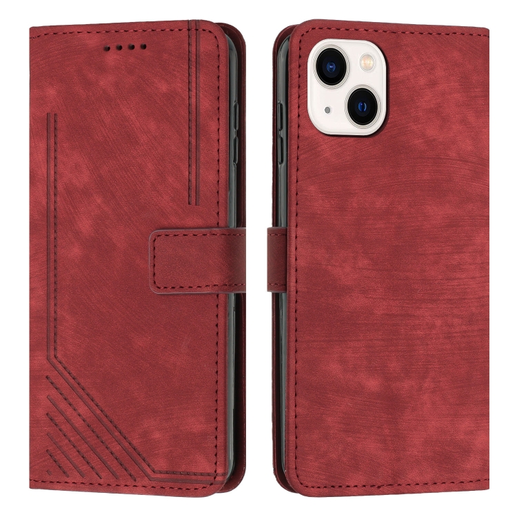 Funda de Cuero para iPhone 15 Plus Skin Feel Stripe Pattern con Cordón (Rojo)