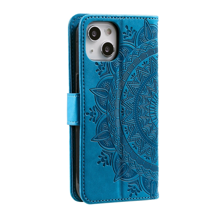 Estuche para Teléfono iPhone 15 Plus Totem Flower Cuero En Relieve (Azul)