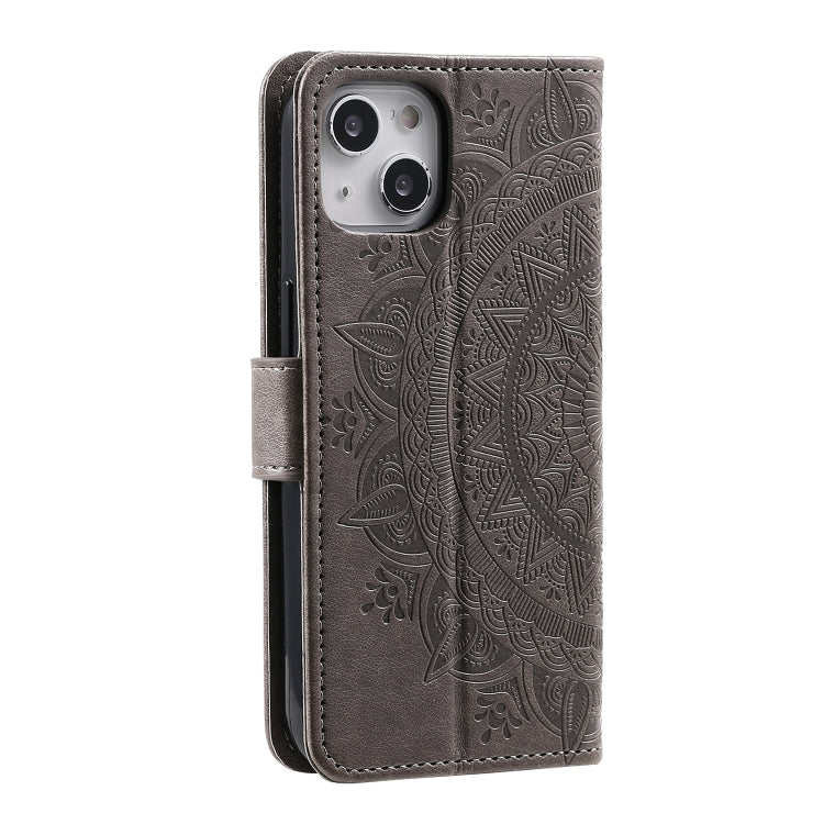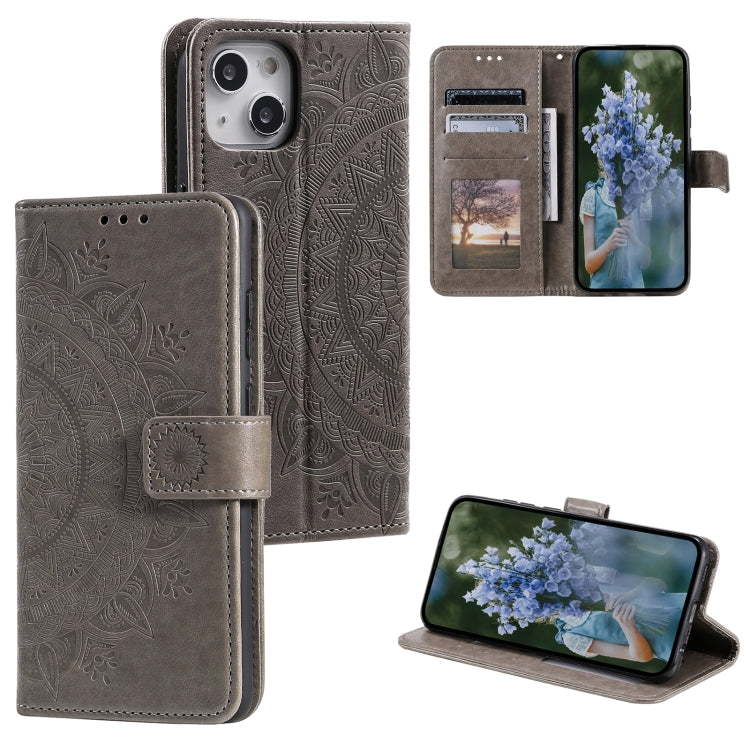 Estuche para teléfono iPhone 15 Plus Totem Flower Cuero en Relieve (Gris)