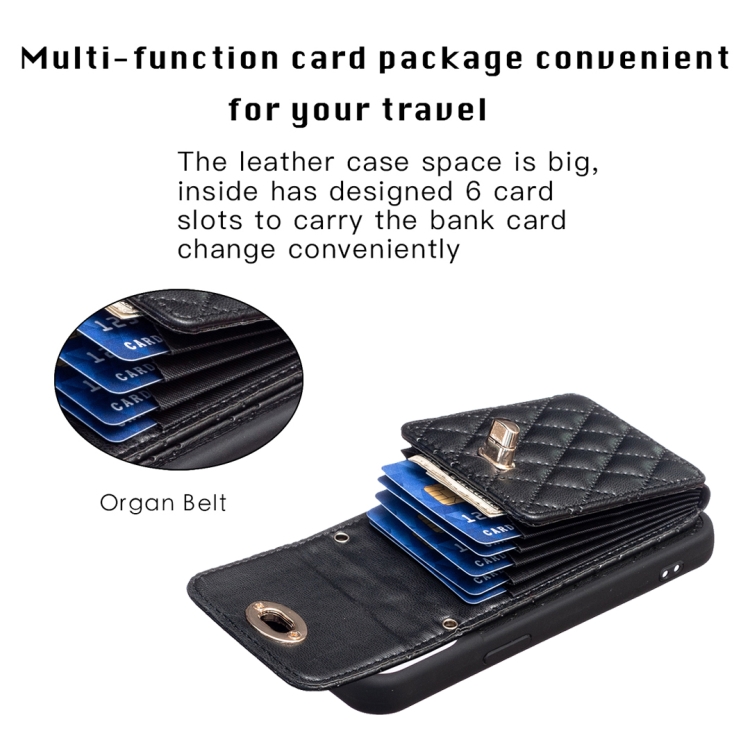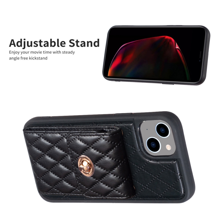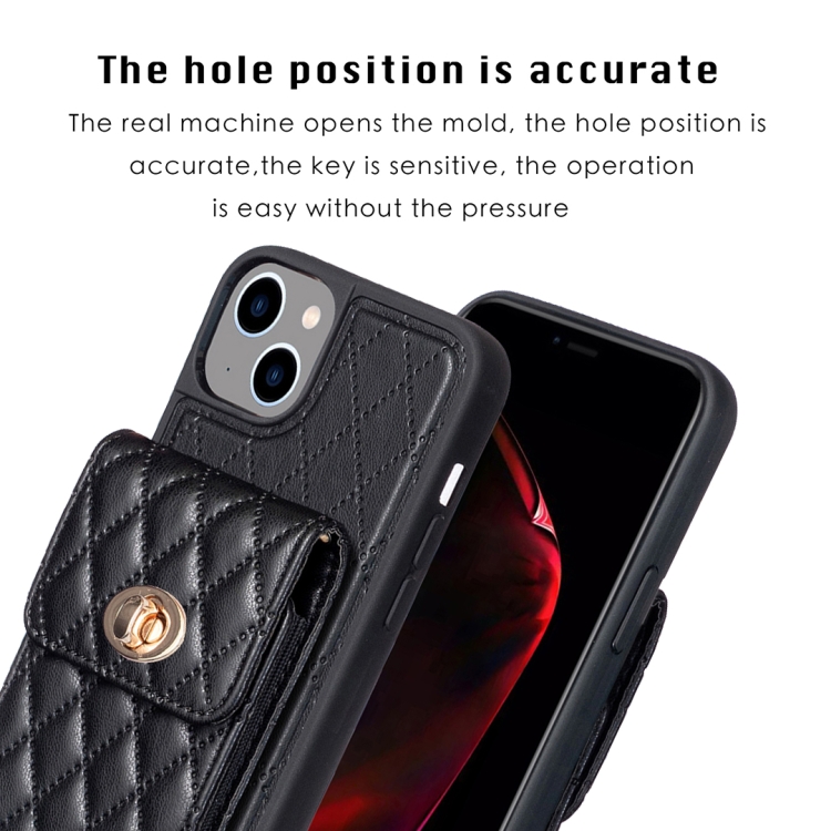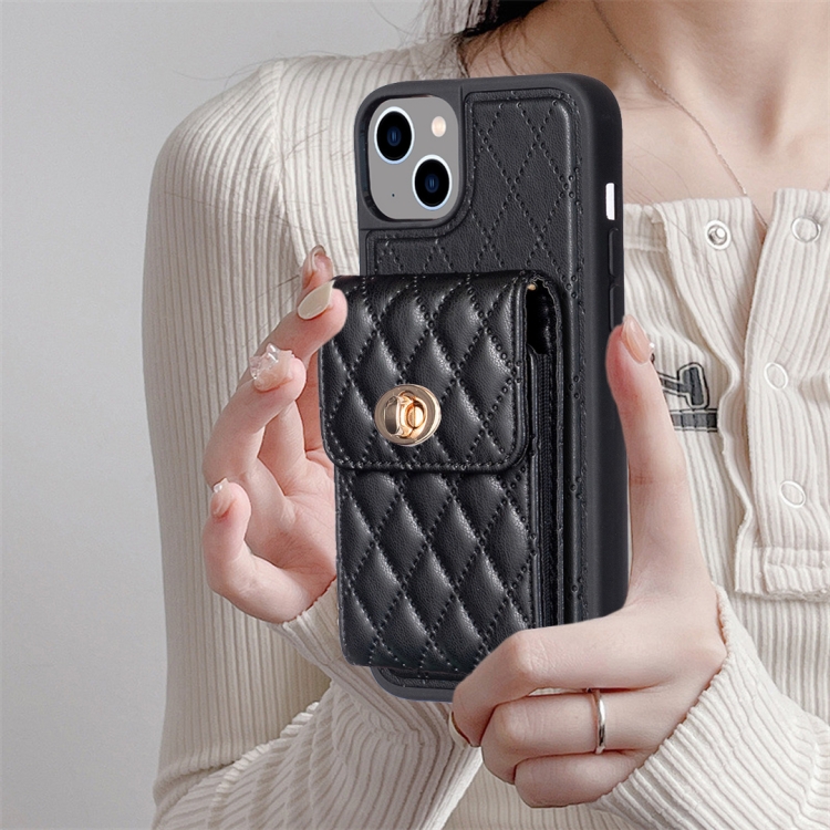 Funda para iPhone 15 Plus Vertical Wallet Rhombic Leather Phone Case (Negro)