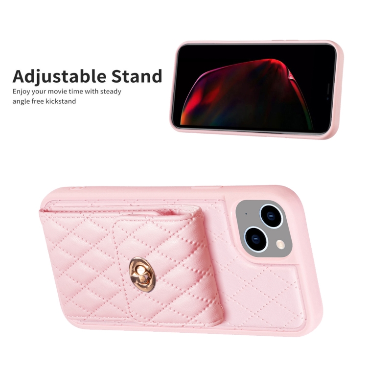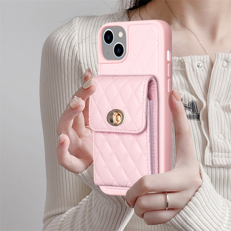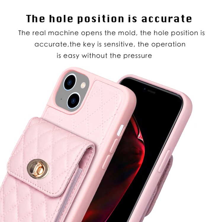 Funda para iPhone 15 Plus Vertical Wallet Rhombic Leather Phone Case (Rosa)