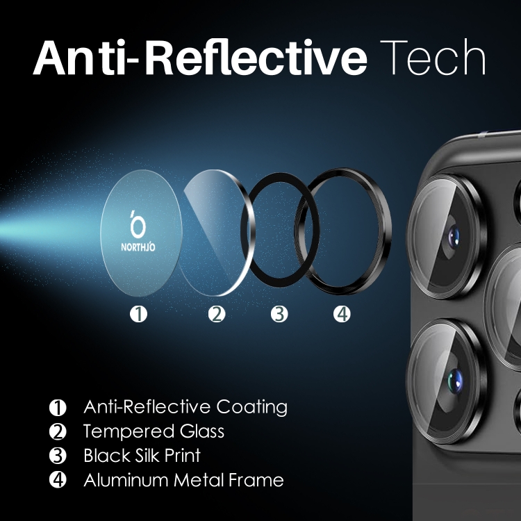 Cubierta Protectora Lente Cámara Northjo iPhone 15 Pro 15 Pro Max Anillo Metal (Negro) 2 Set 6 Piezas
