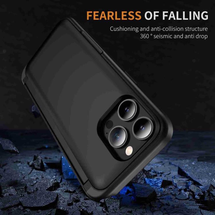 Funda para Teléfono iPhone 15 Pro 3 En 1 con Soporte Abatible (Negro)
