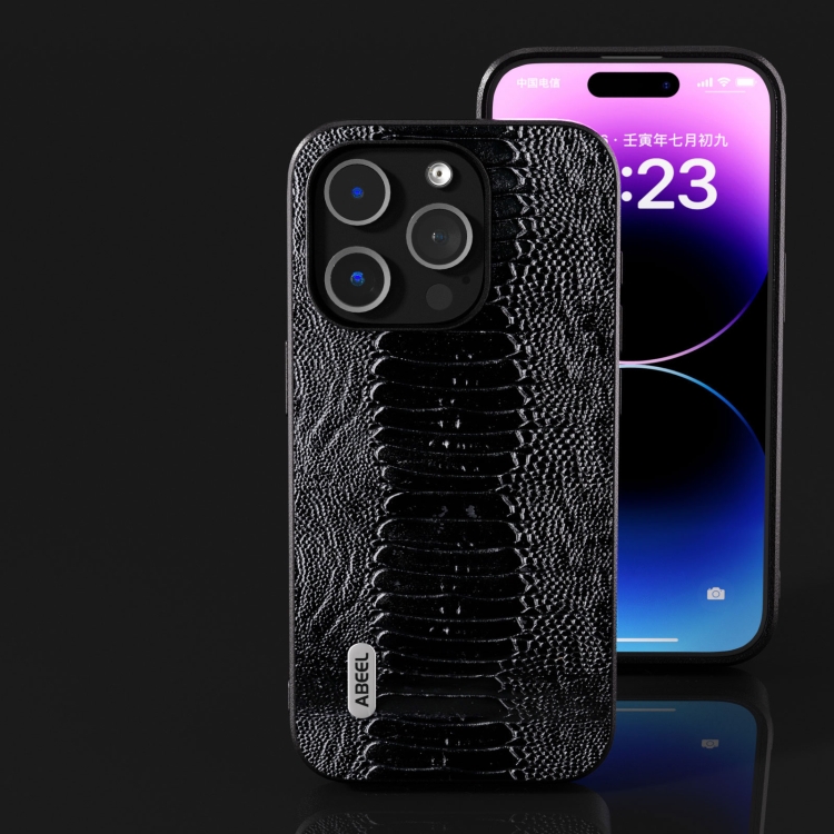 Funda de teléfono iPhone 15 Pro Abel Serie Weilai Cuero Genuino (Negro)