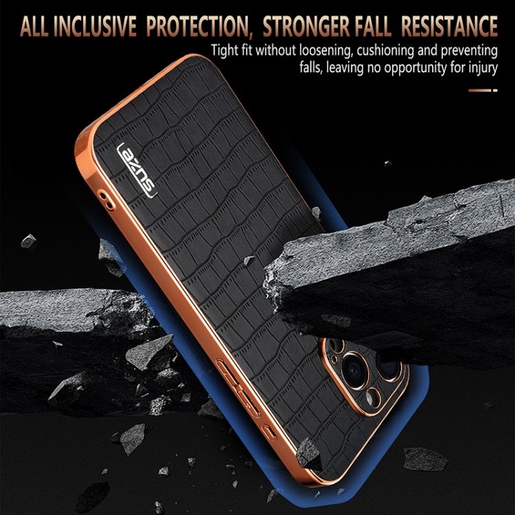 Estuche para teléfono Azns iPhone 15 Pro textura de cocodrilo marco galvanizado (Marrón)