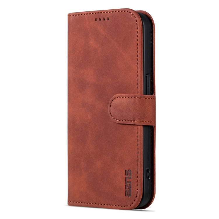 Funda para iPhone 15 Pro Azns Skin Feel Calf Texture Cuero con Tapa (Marrón)