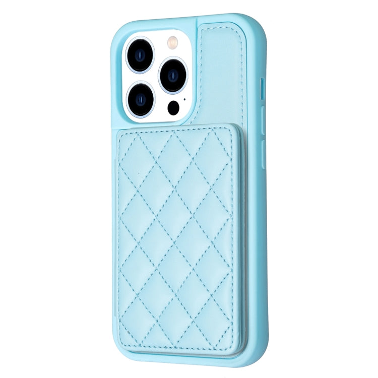 Funda para iPhone 15 Pro Bf25 Square Plaid Card Bag Holder Phone Case (Azul)