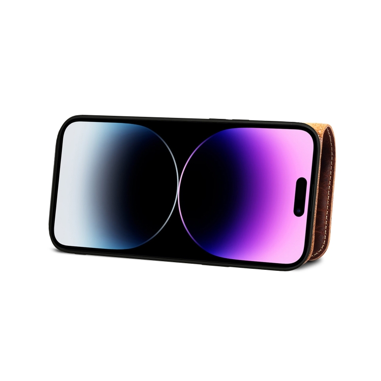 Funda para iPhone 15 Pro Denior Oil Wax Cuero de Vaca con Botón Magnético (Rojo Oscuro)