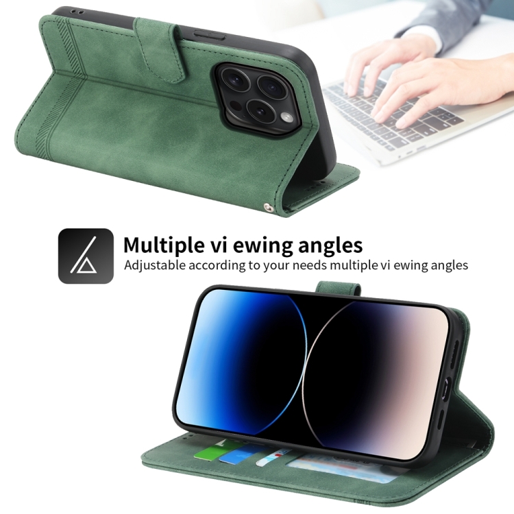 Funda para iPhone 15 Pro Dierfeng Dream Line TPU y Cuero Pu (Verde)