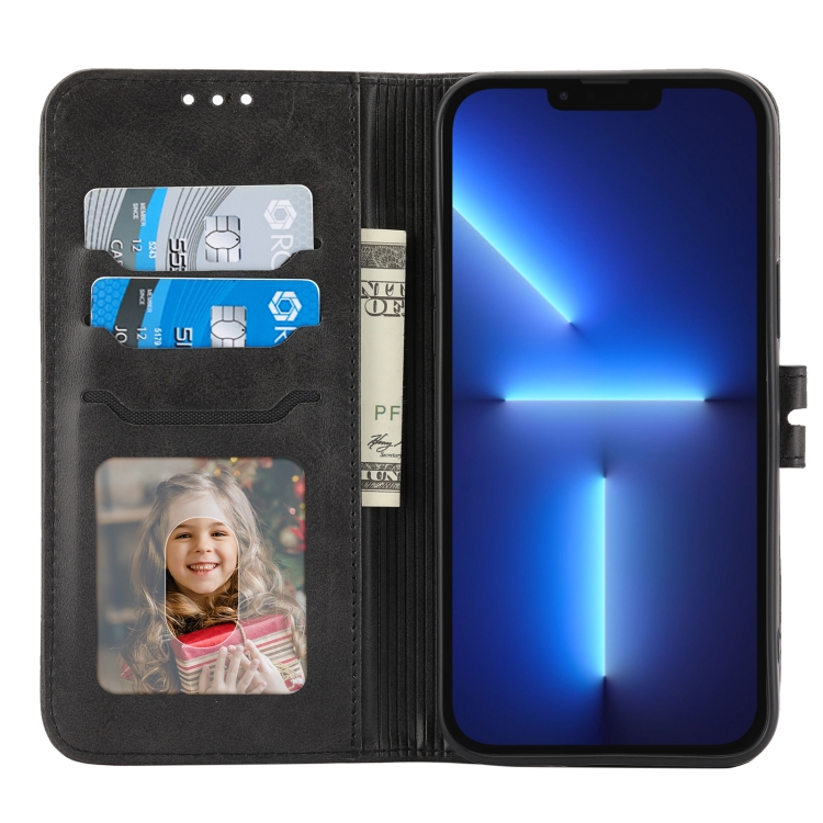Funda de Cuero para iPhone 15 Pro Flip con Relieve Happy Cat Pattern (Negro)