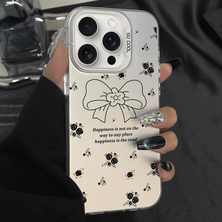 Estuche híbrido para iPhone 15 Pro TPU y PC con pintura plateada (Lazo Floral Blanco)
