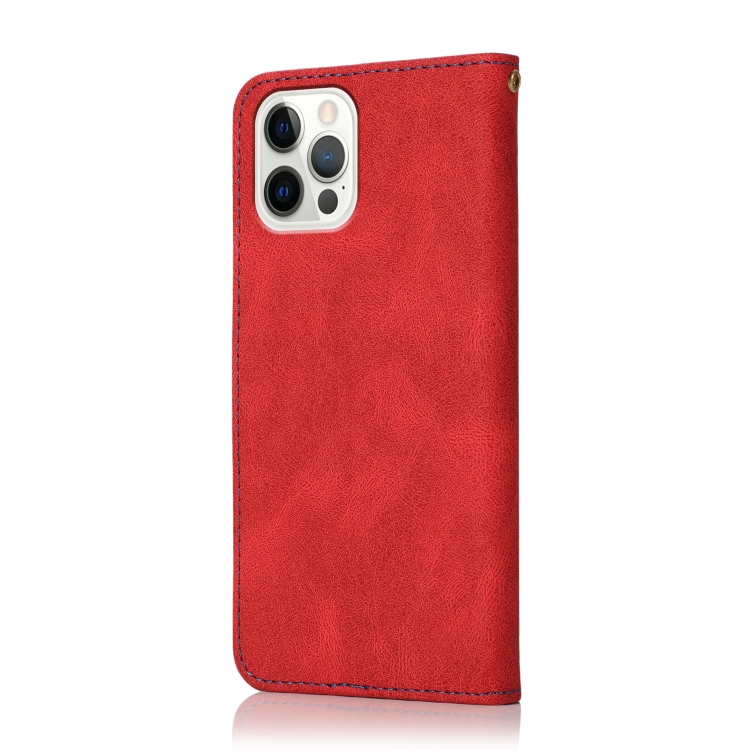 Estuche para Teléfono iPhone 15 Pro Cuero con Costuras de Dos Colores (Rojo Azul)