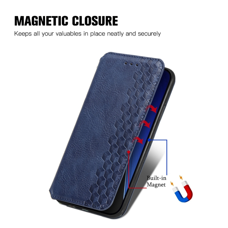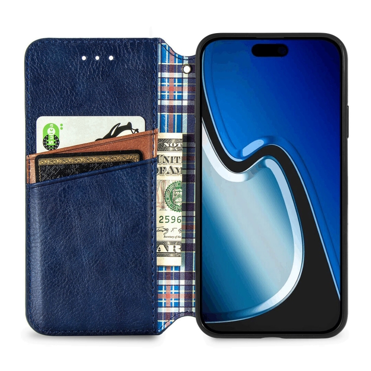 Estuche para Teléfono iPhone 15 Pro Cuero Magnético Prensado Rejilla Cúbica (Azul)