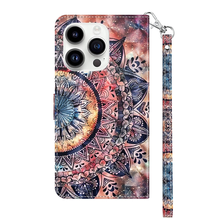 Funda para iPhone 15 Pro Cuero Pintada en 3D Mandala Colorida