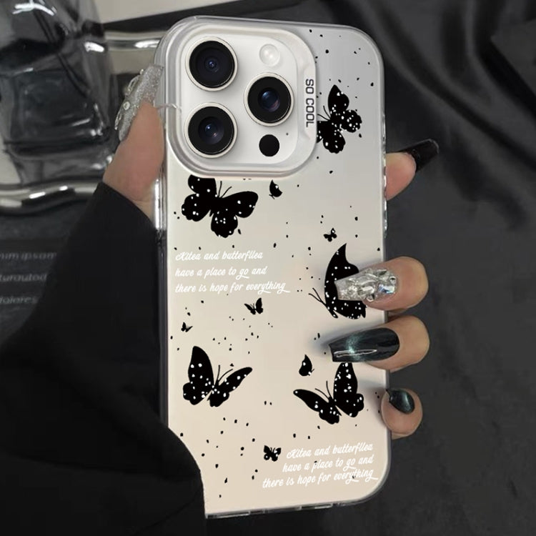 Funda híbrida para iPhone 15 Pro TPU con pintura plateada para PC Mariposa de tinta blanca