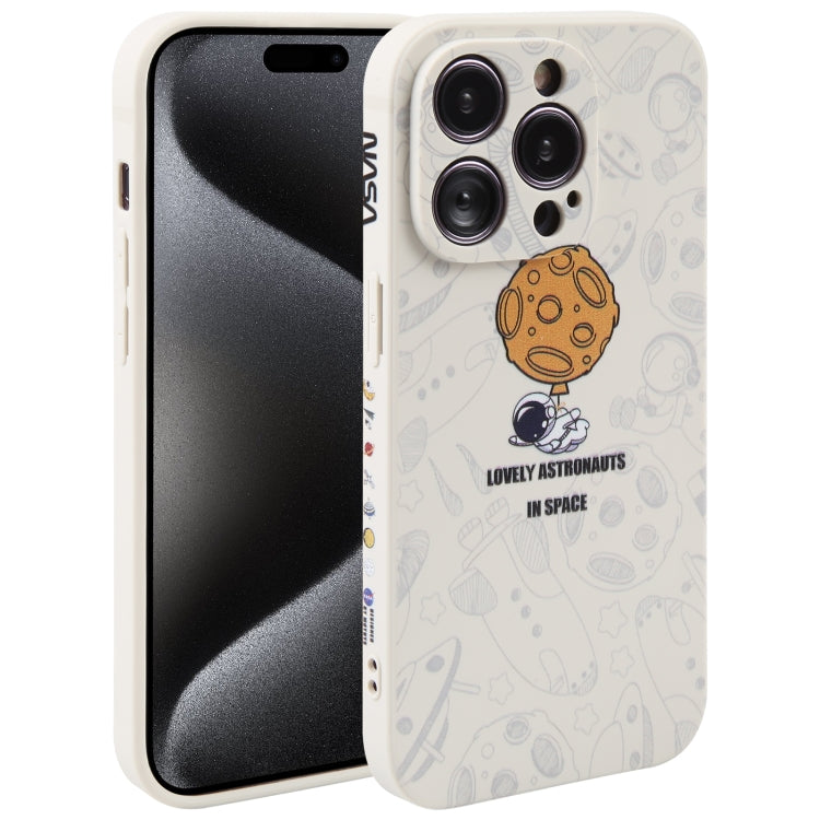 Funda para Teléfono iPhone 15 Pro Silicona Borde Recto Patrón Astronauta (White)