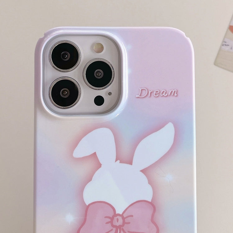 Funda para Teléfono iPhone 15 Pro con Patrón Pintado PC (Conejito con Lazo Rosa)
