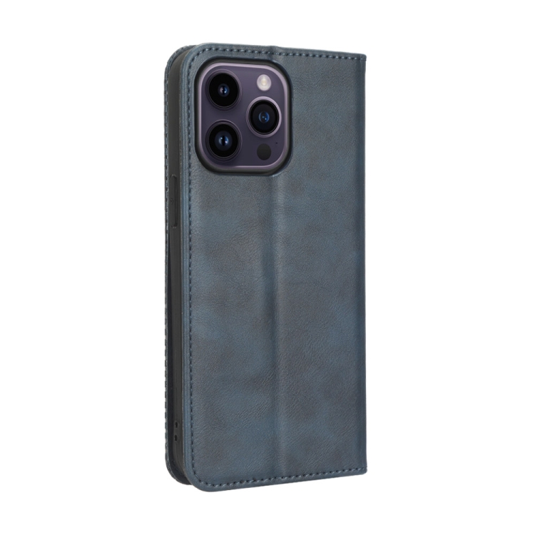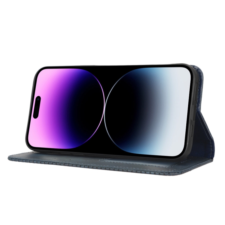 Funda para Teléfono iPhone 15 Pro Cuero Textura Retro Hebilla Magnética (Azul)