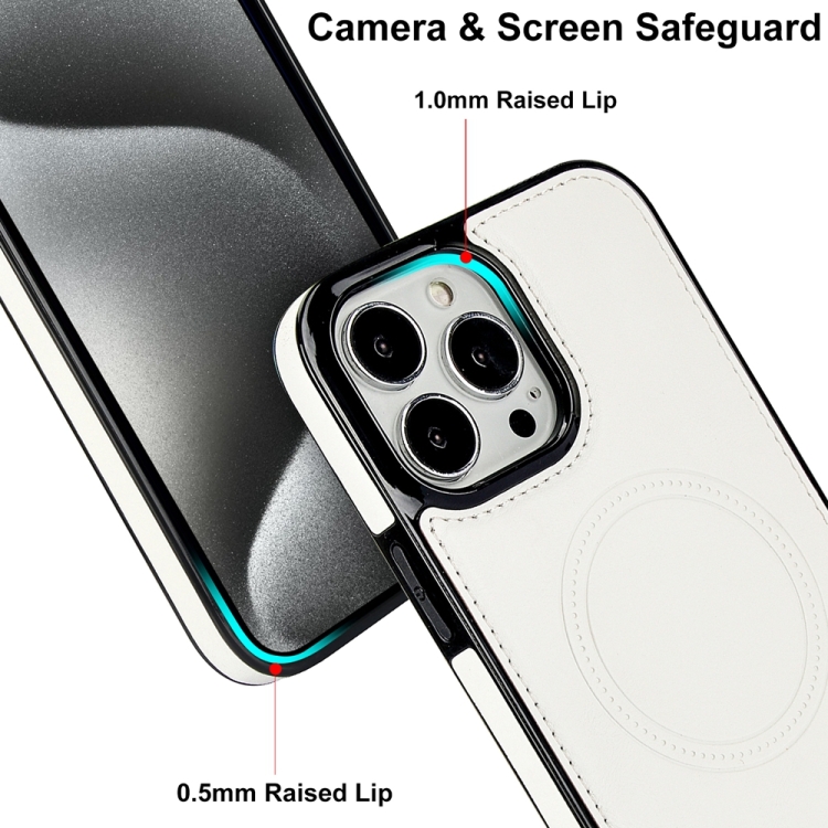 Funda para Teléfono iPhone 15 Pro Magsafe Soporte Invisible Cuero Retro (Blanco)
