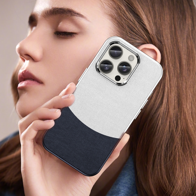 Funda para Teléfono iPhone 15 Pro Magsafe Magnetic TPU + PC Textura de Cuero (Azul Oscuro)