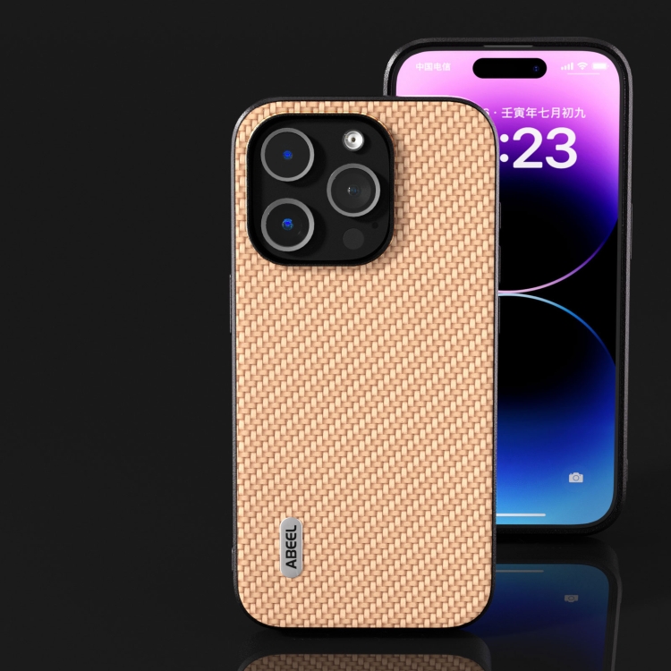 Funda Protectora Abeel para iPhone 15 Pro con Textura de Fibra de Carbono (Amarillo)