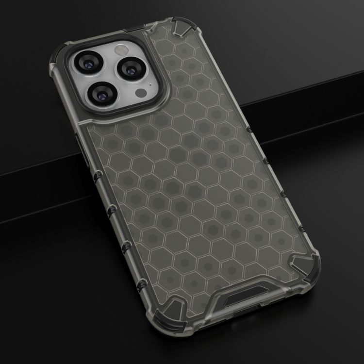 Funda para iPhone 15 Pro Lanyard Honeycomb Phone Case (Negro)