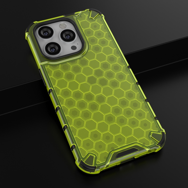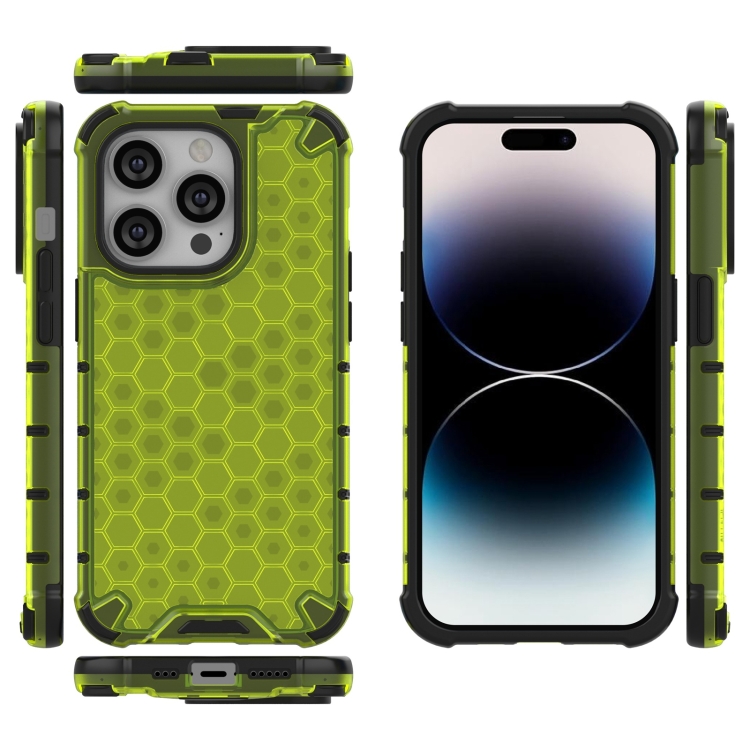 Funda para iPhone 15 Pro Lanyard Honeycomb Phone Case (Verde)