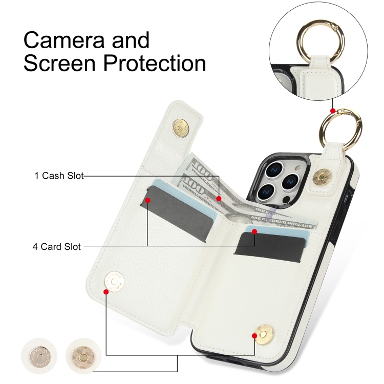 Funda para Teléfono iPhone 15 Pro Litchi Texture Cremallera Doble Hebilla con Bolsa para Tarjetas (Blanco)