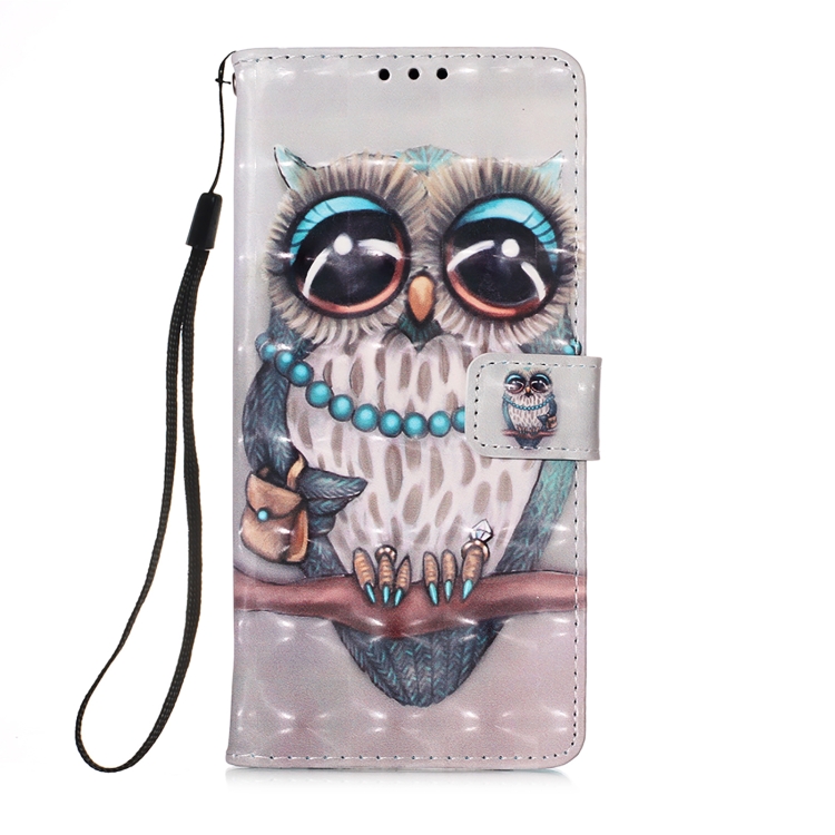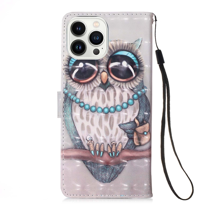 Funda de Cuero para iPhone 15 Pro Max 3D Painting con Tapa Horizontal (Búho Gris)