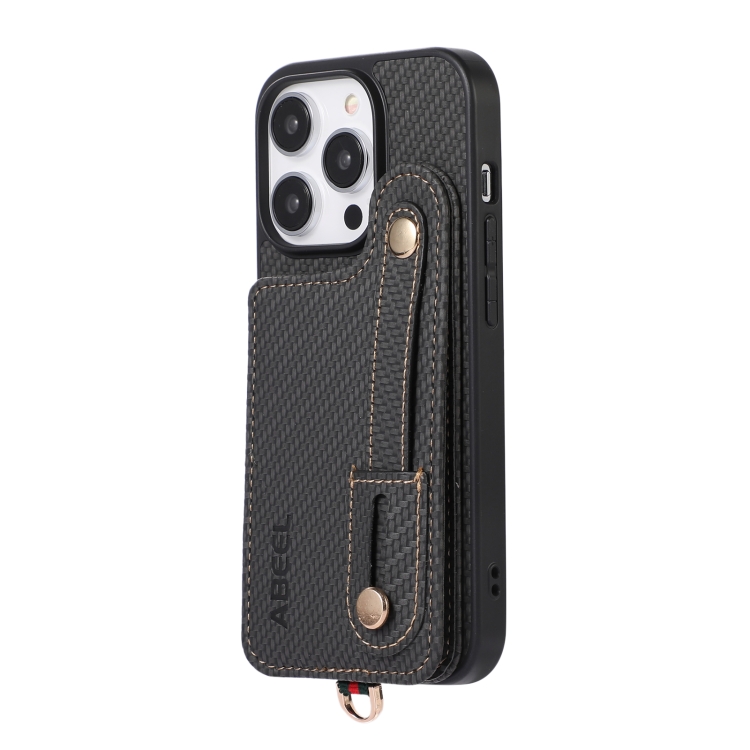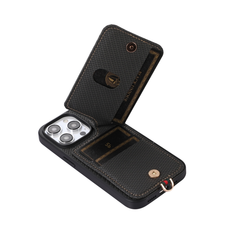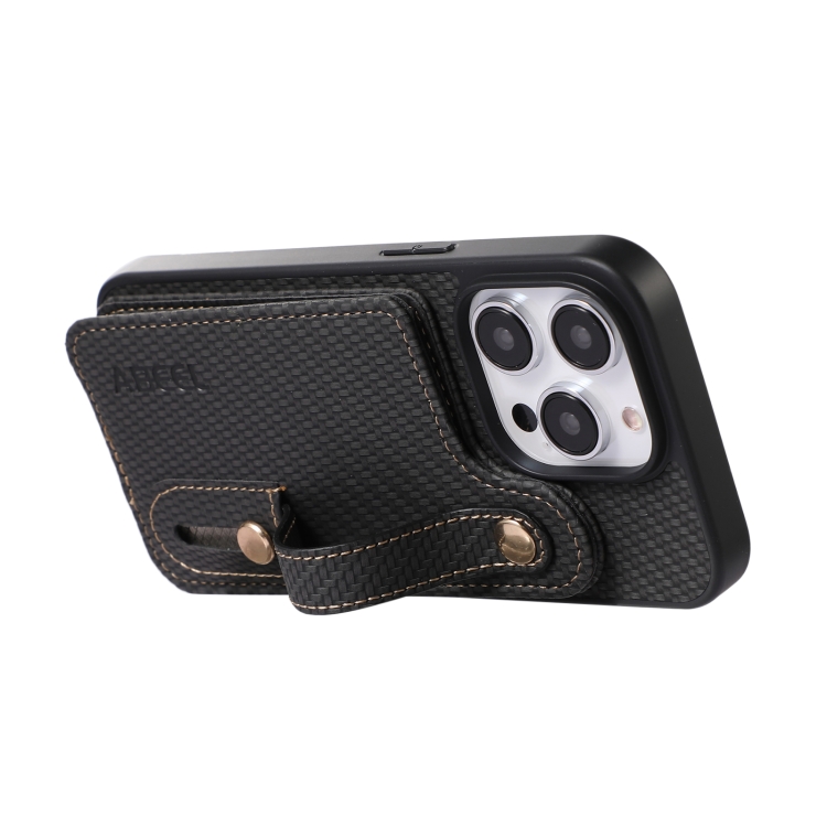 Funda de teléfono Abeel para iPhone 15 Pro Max con soporte de tarjeta RFID de fibra de carbono (Negro)