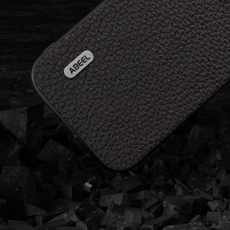 Funda de teléfono Abeel para iPhone 15 Pro Max con textura Litchi de cuero genuino (Negro)