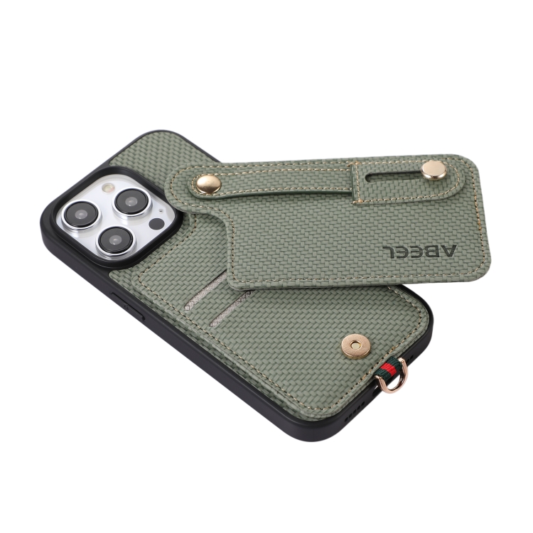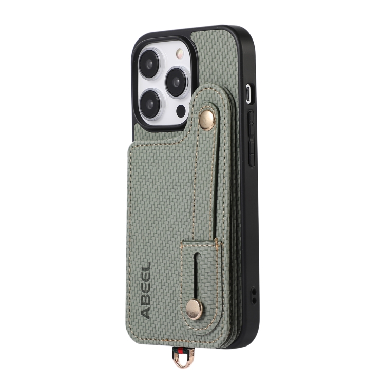 Funda para Teléfono Abeel iPhone 15 Pro Max con Tarjetero RFID Fibra de Carbono (Verde)