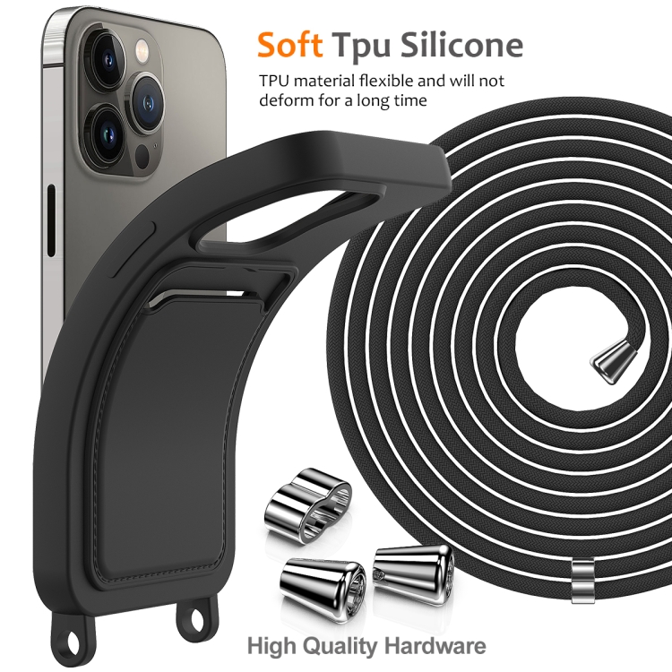 Funda para teléfono iPhone 15 Pro Max Bolsa para Tarjeta Silicona Líquida con Cordón (Negro)